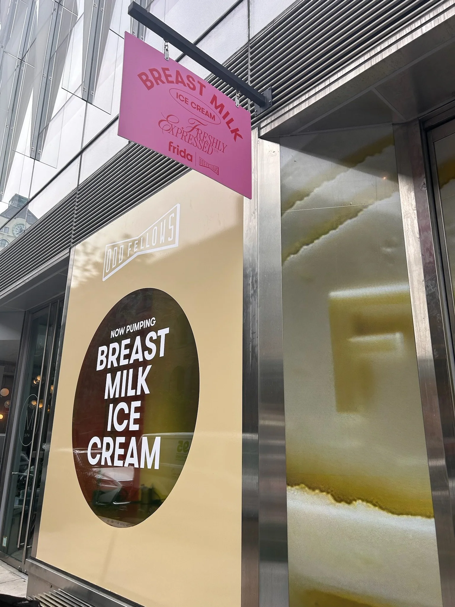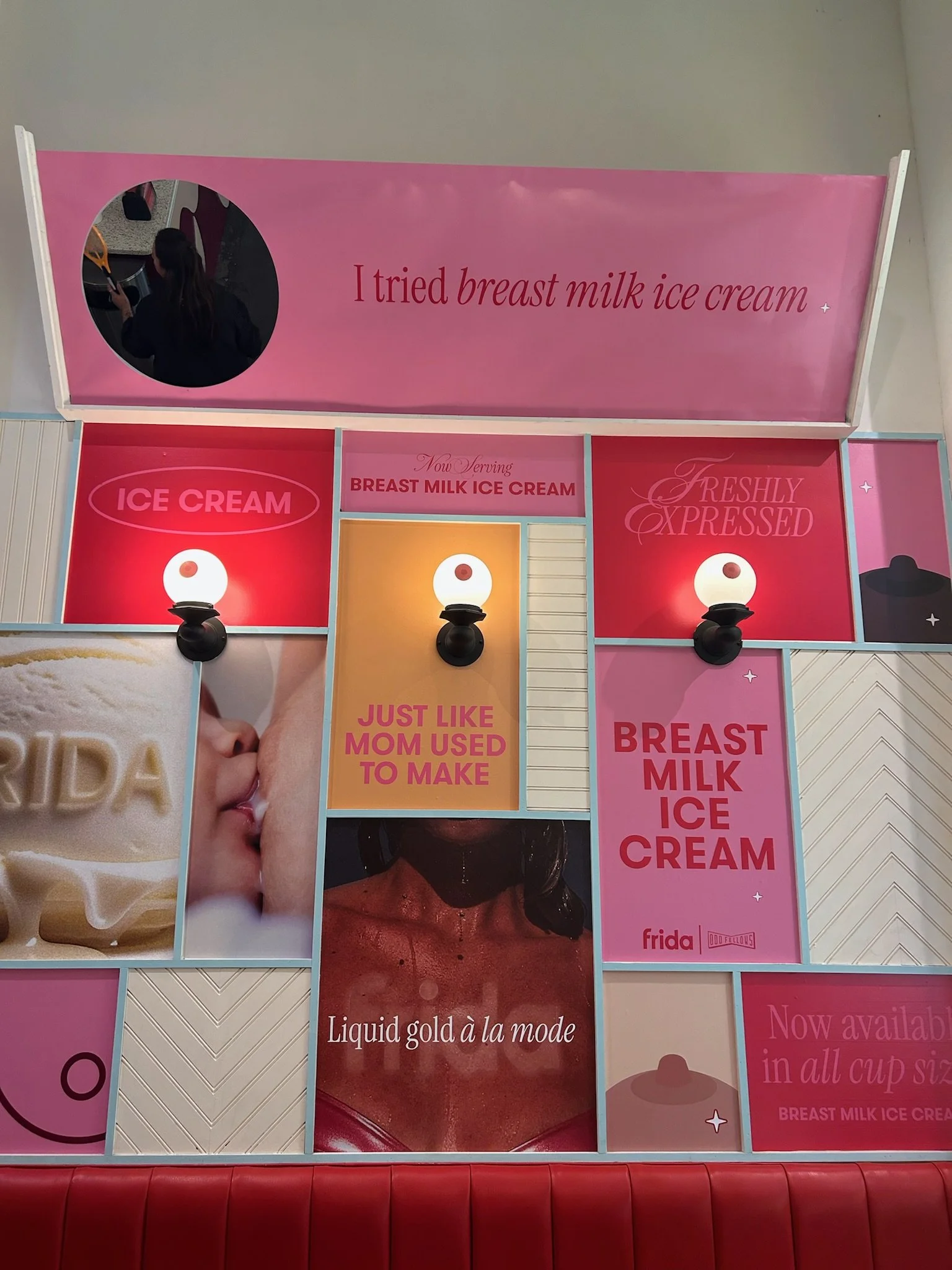 We transformed OddFellows’ Dumbo location into a Frida Baby breast milk ice cream shop as part of a bold, tongue-in-cheek marketing stunt. Designed to be both fun and highly shareable, the rebrand leaned into playful, photo-worthy moments to spark conversation and drive buzz. Our team led creative concepting and executed a full visual takeover — working closely with vinyl and print vendors to install temporary, removable decor that brought the stunt to life without leaving a trace.